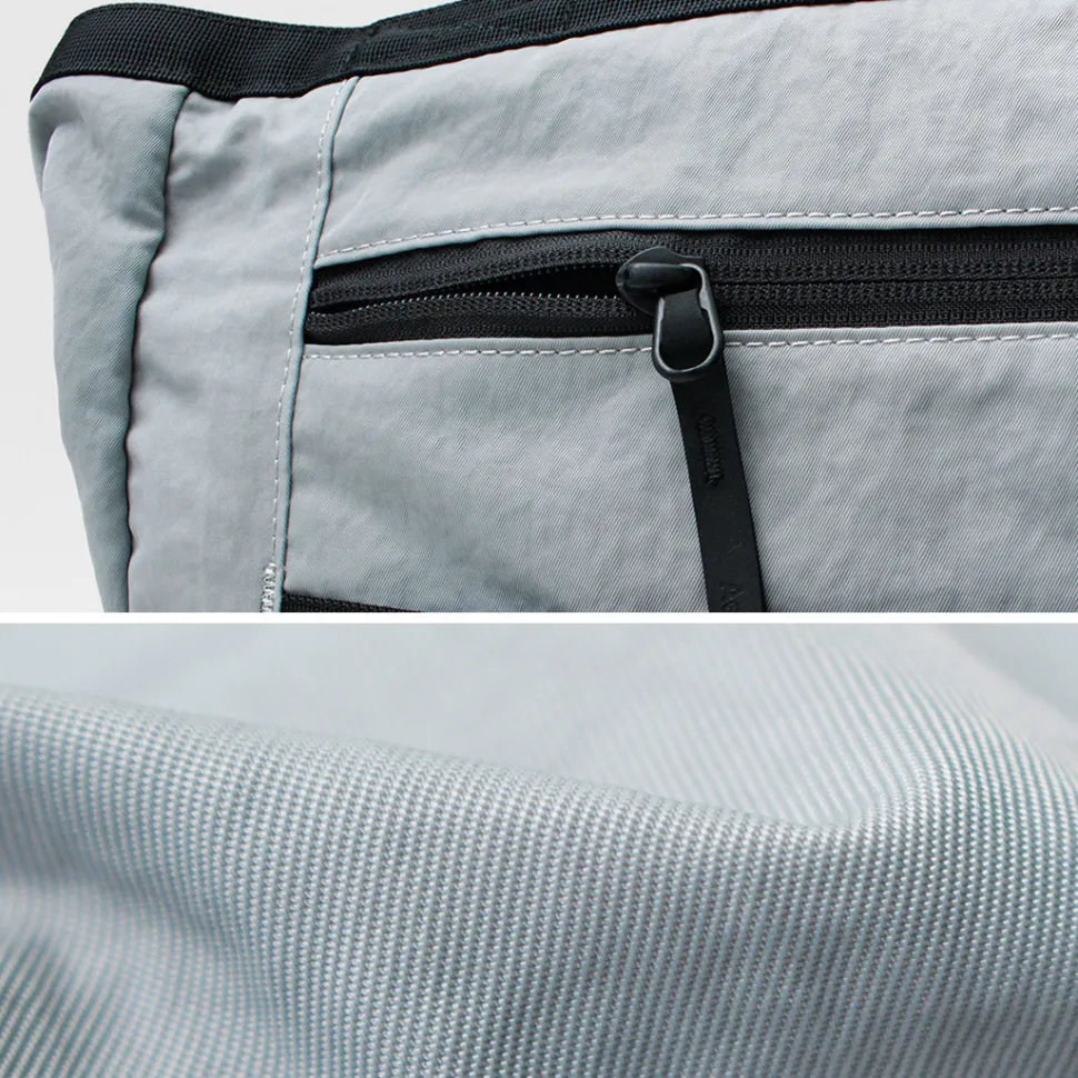 The fabric is Bluesign certified 210D (denier) Cordura nylon. It is made from INVISTA’s high-strength yarns and is extremely durable. In addition to being light and strong, it is also water-repellent and will repel a little rain to protect your belongings inside.