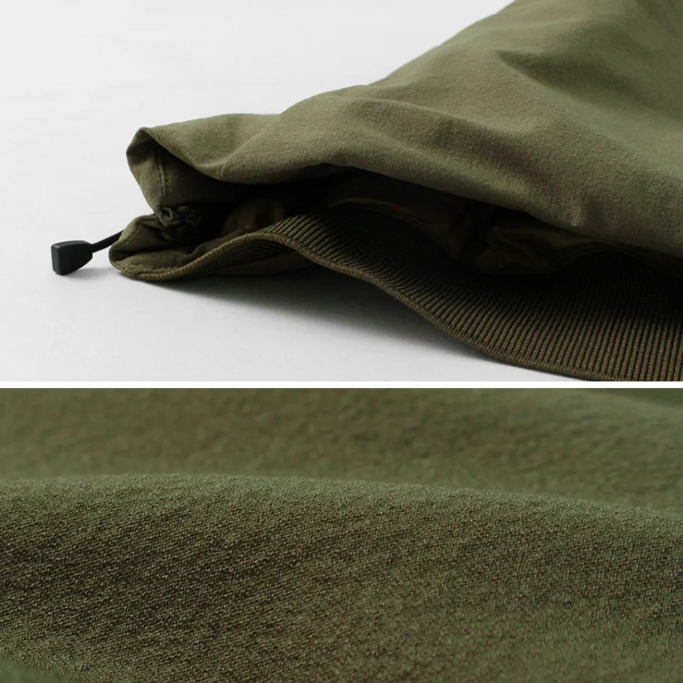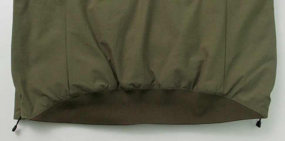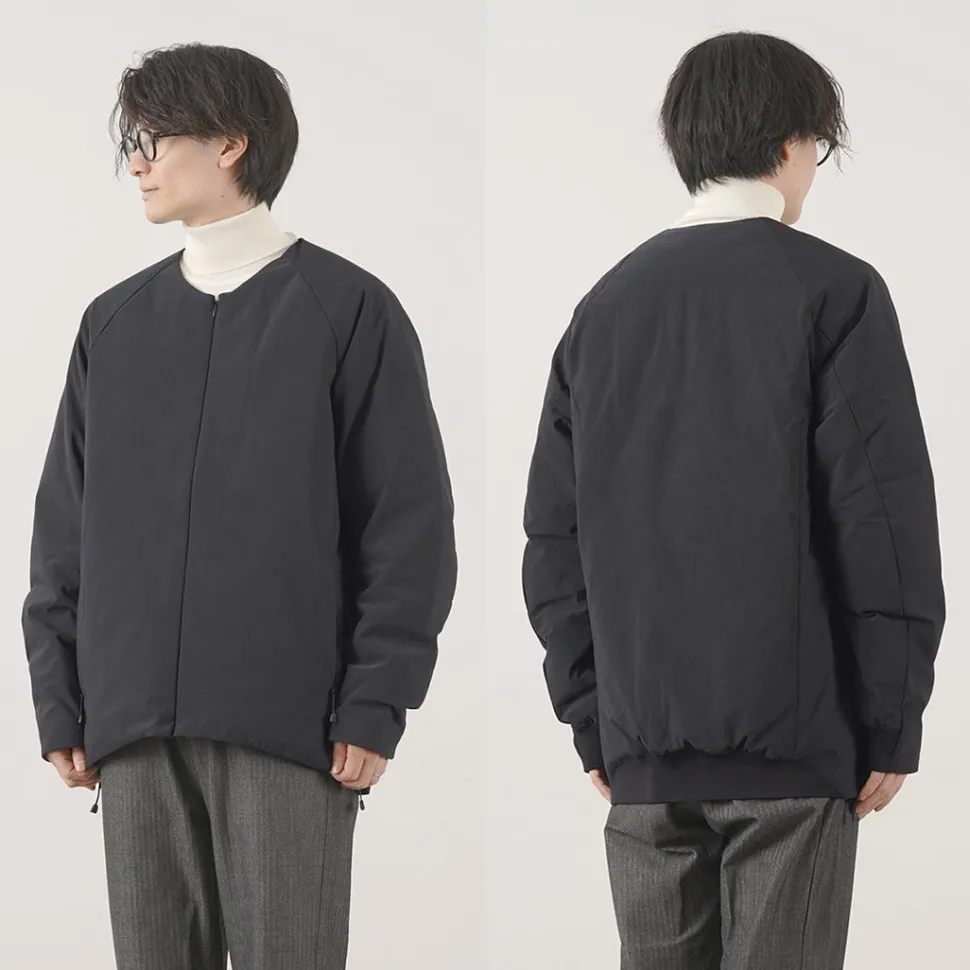 To prevent the ribs from being seen from the front, the cuffs are placed on the inside and the hem is ribbed only on the back. While the minimalistic look is important, the practicality of the garment is also unquestionable, such as the prevention of outside air from entering through the cuffs and hem.