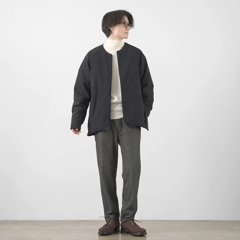 The outer fabric is made of cut-and-sewn fabric, which is rare for down wear, and its fine and rough texture creates an elegant atmosphere. The brand’s original high-quality recycled down adjusts the amount of down used so that it does not provide excessive heat retention, and is made into one that can be used in a wide range of situations.