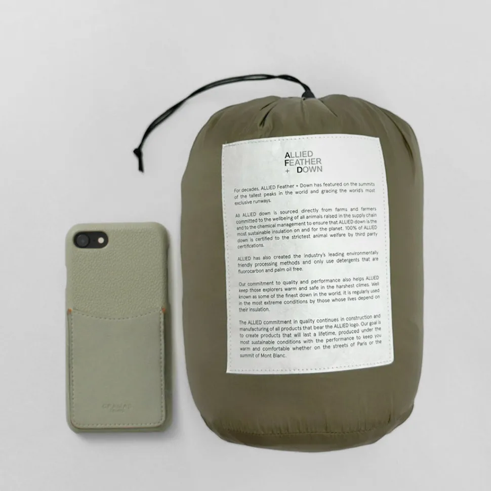 The inside is made of the brand’s original 700FP ALLIED recycled down. It offers the same level of durability and loft as new down, and has achieved a cleanliness test of 1000mm, which is higher than the 500mm value generally considered the standard for new down.