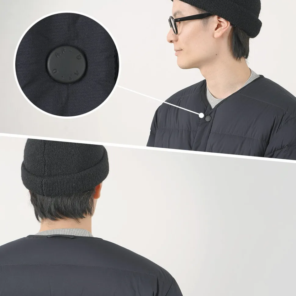 A reversible down cardigan designed for home use. The front is made of lightweight and windproof PERTEX QUANTUM with a matte look that creates an urban atmosphere. The reverse side uses “POLARTEC HIGH LOFT” fleece, which is characterized by its high heat retention and soft feel against the skin, giving it a warm impression.