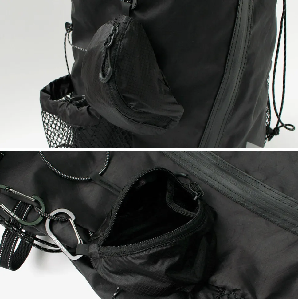 A small pouch attached to the body with an accessory carabiner is included. It’s just the right size for storing a rubber cover to protect the tip of hiking poles when carrying them. Depending on your needs, it can also be used to store rain gear when wearing it, keys, emergency change, and other useful items.