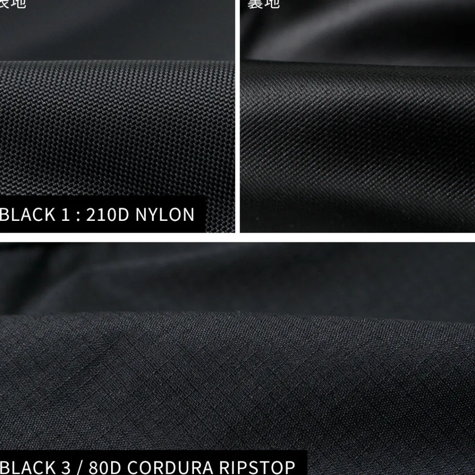 【Bottom Image: BLACK3】Made from an 80 denier Cordura ripstop nylon, this lightweight and thin fabric is water-repellent, tear-resistant, and can be easily packed compactly.