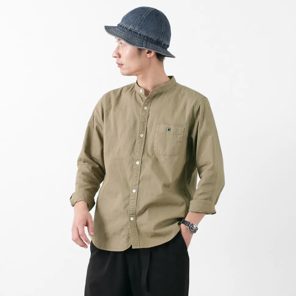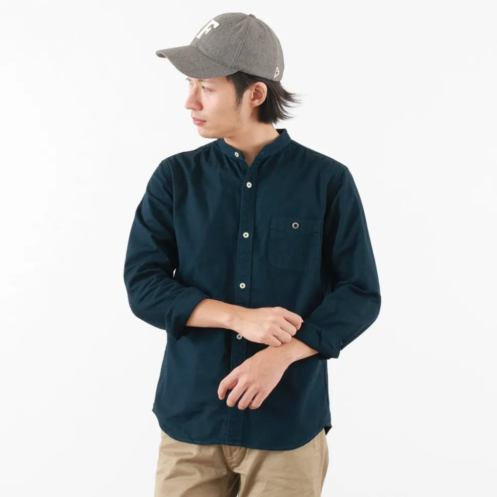 This is a band collar shirt that sticks to domestic production for all processes of sewing, dyeing, and washing. This shirt is made of carefully selected oxford fabric, dyed with product dyeing to give it a unique texture and a soft feel.