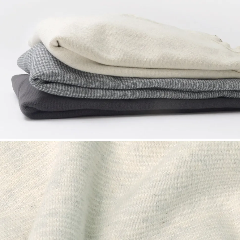 Spun milled fabric is a knit fabric with elastic knitting and features excellent stretch and moisture absorption properties. Polyurethane is blended into the fabric to add kickback properties, making it a durable fabric that is hard to damage even when washed with a lot of gunpowder.