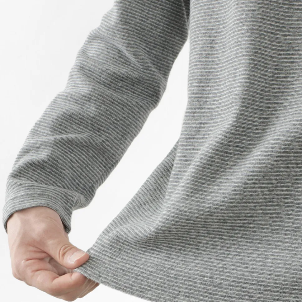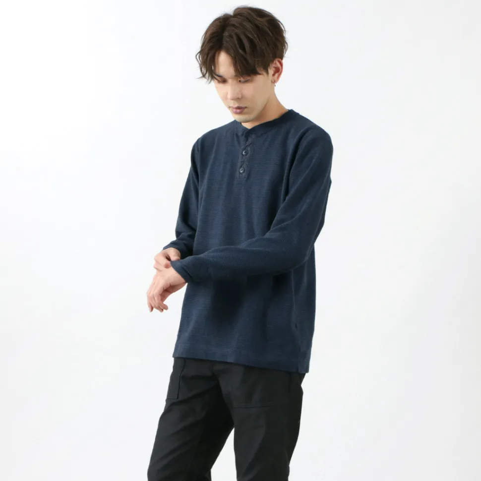 This henley neck t-shirt is made of BARNS’ heavy spun milled fabric, specially ordered by ROCOCO. The design is a fusion of the attention to detail and the stretch and fit unique to spun milling fabric, resulting in an all-around great finish.
