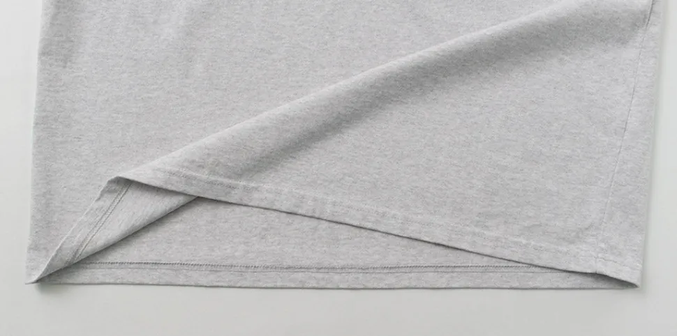 The neckline adopts a high-strength double binder neck. In addition to the binder neck commonly seen in t-shirts, it reinforces the entire neckline with a separate fabric around the outer circumference, effectively suppressing stretching and sagging, which are unavoidable in t-shirts.