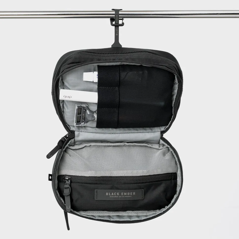 Introducing the BLACKEMBER dopp kit, a convenient way to store items needed for traveling.