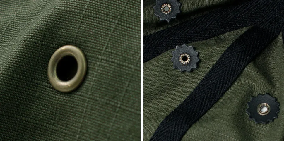 It uses 100% ripstop cotton fabric. The grid-like weave of the fibers makes it resistant to tears and fraying, ensuring durability. With high density and a moderate stiffness, it also has an elegant appearance.