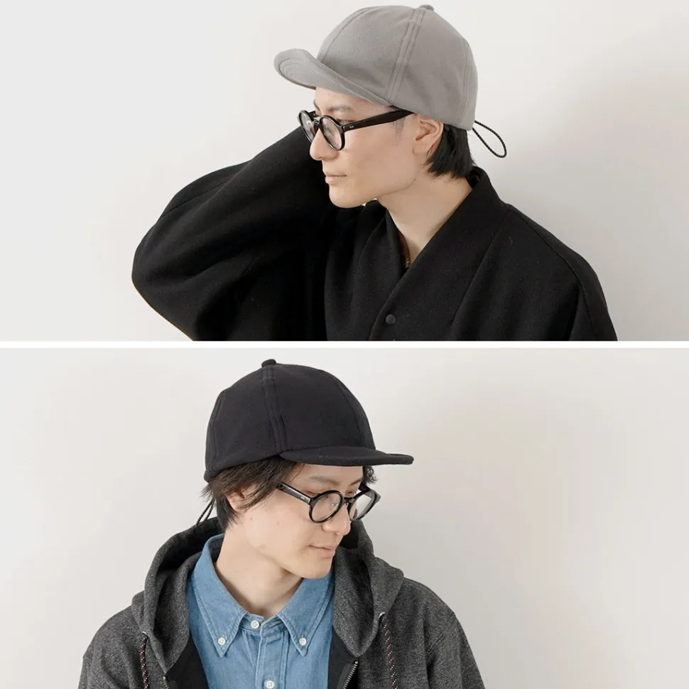 It consists of three panels, and the curved part is designed to follow the roundness of the head by three-dimensional cutting. The drawcord can be stored inside, so you can change the way you wear it depending on the occasion.