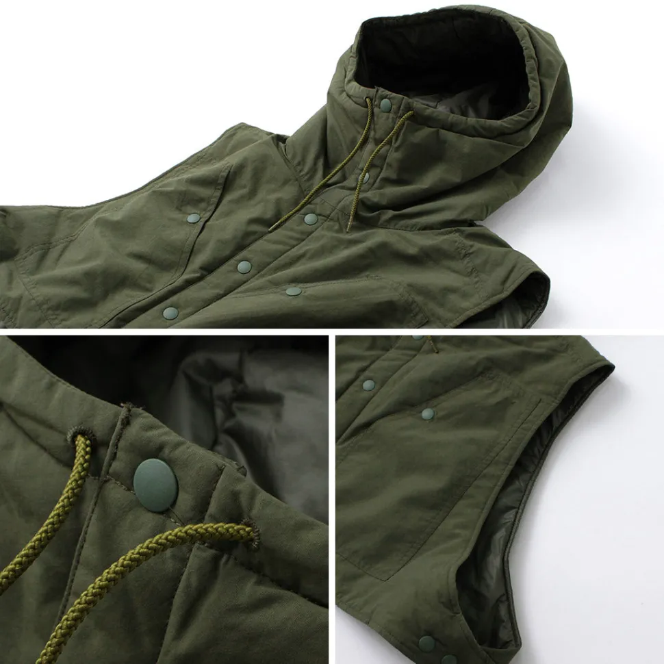 The shell is made of “Supplex Nylon” that excels in quick-drying and UV protection, the liner is made of “PERTEX QUANTUM” that is lightweight and highly durable, and the inside is made of “PRIMALOFT SILVER” that does not lose its heat retention ability even when wet. It is thin, yet durable, warm, and lightweight.