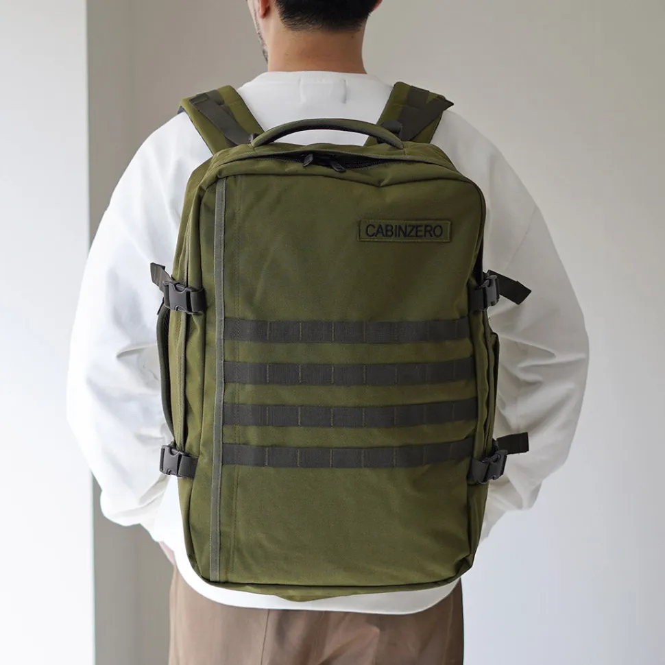 Introducing the 44L backpack from the “MILITARY” series, the toughest and most rugged of the CABIN ZERO lineup. The unique military “MOLLE system” on the front is an eye-catching design.