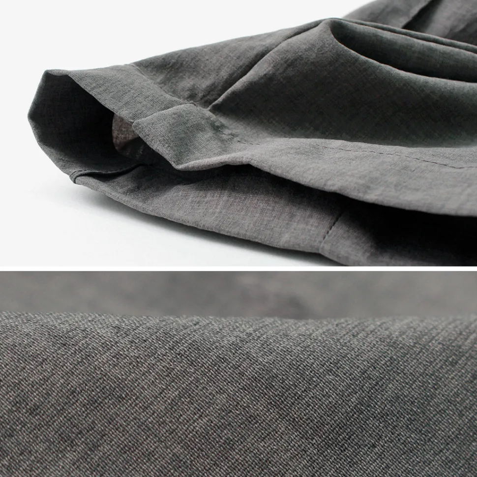 This item is made of high-twist polyester fabric with a natural wrinkle texture. The material has a dry touch and high elasticity like linen, making it easy to move around in and comfortable to wear even when sweating.