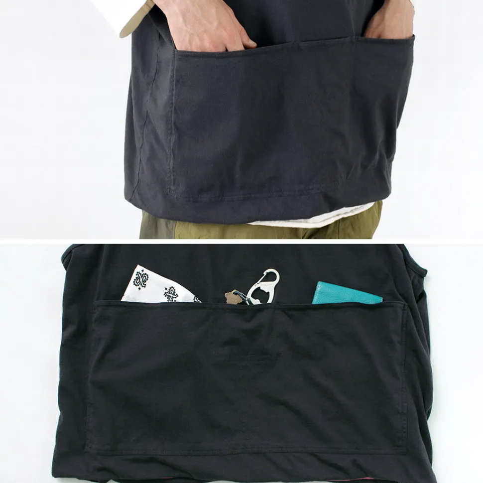 The design is generously sized in both width and cuffs and is equipped with tool pockets that can be used like a waistcoat or apron.