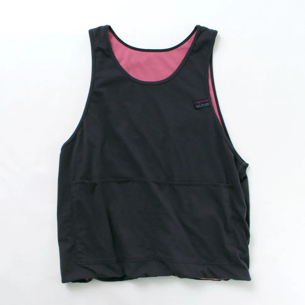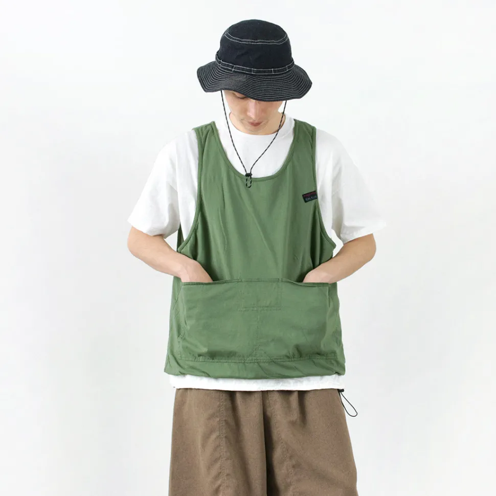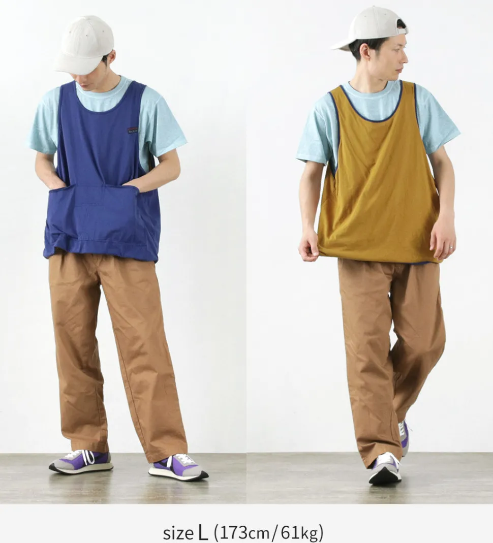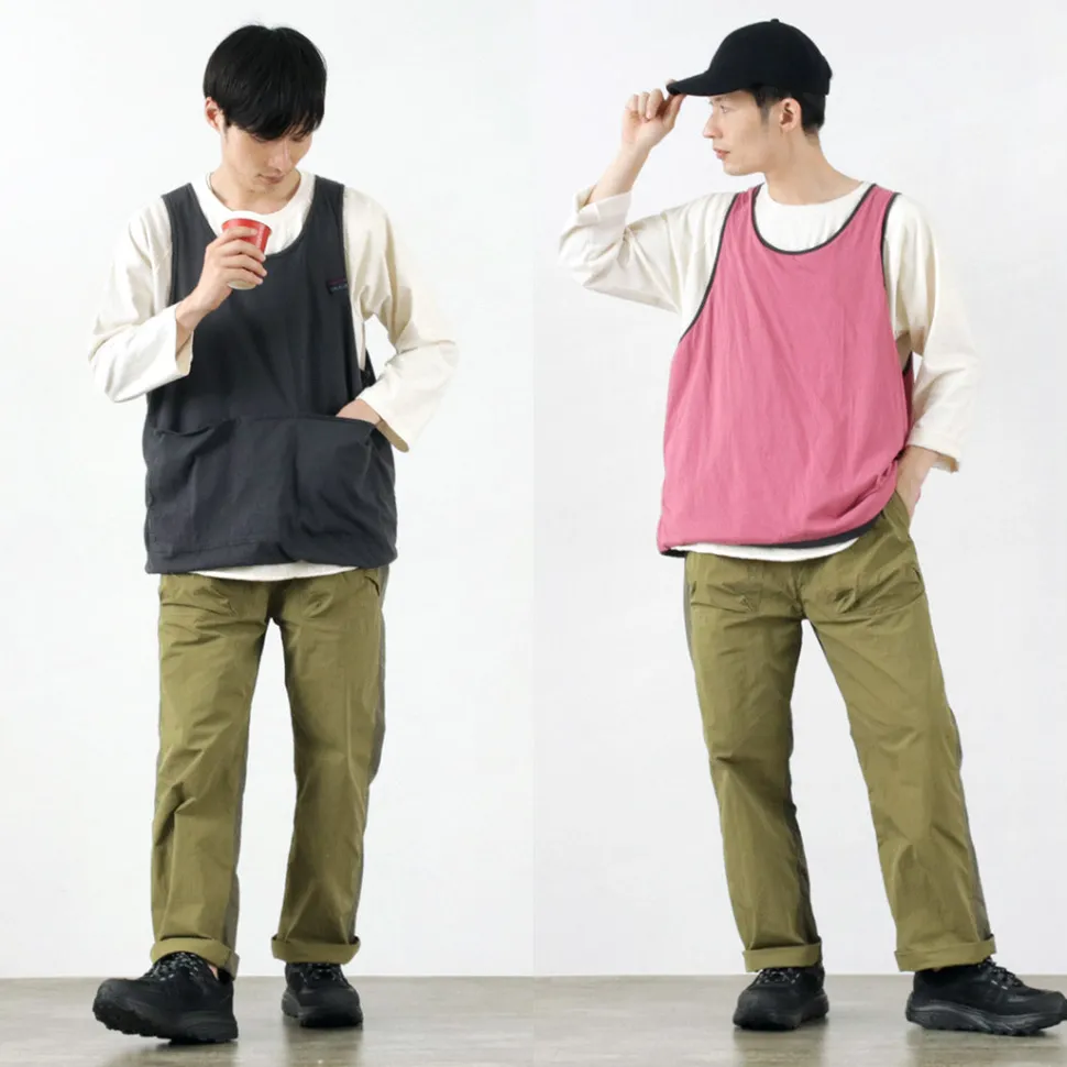 Tank top that can be worn reversibly. The large tool pocket on the front provides a design accent and good storage capacity.
