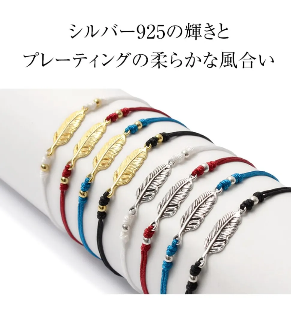 This notching cord anklet features an exquisite combination of mini feathers and colored cords, a rich color variation, and a feather charm. The combination of the beautiful shine of 925 silver and the colorful notched cord will enhance your summer style. It is water-resistant and dries quickly after getting wet, so you can leave it on all day long, making it a perfect item for summer leisure. The brilliance of 925 silver and the soft texture of plating. 925 silver is a type of silver. The meaning of the number 925 refers to the silver content (purity) of the alloy, which contains 92.5% silver. Water-resistant notched cordsNotched cords are made of polyester yarn that has a silky sheen to it. Even a single thin cord is very strong and is used as a material for accessories.