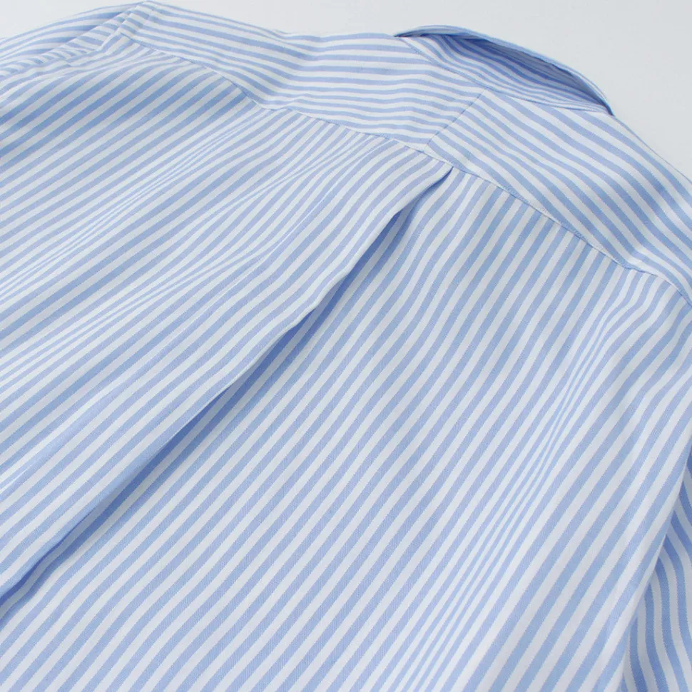 The fabric is made of pin-ox, which is woven with finer yarns than usual. The sizing around the neck, the stitching work, and even the sewing of the buttons are all carefully considered.