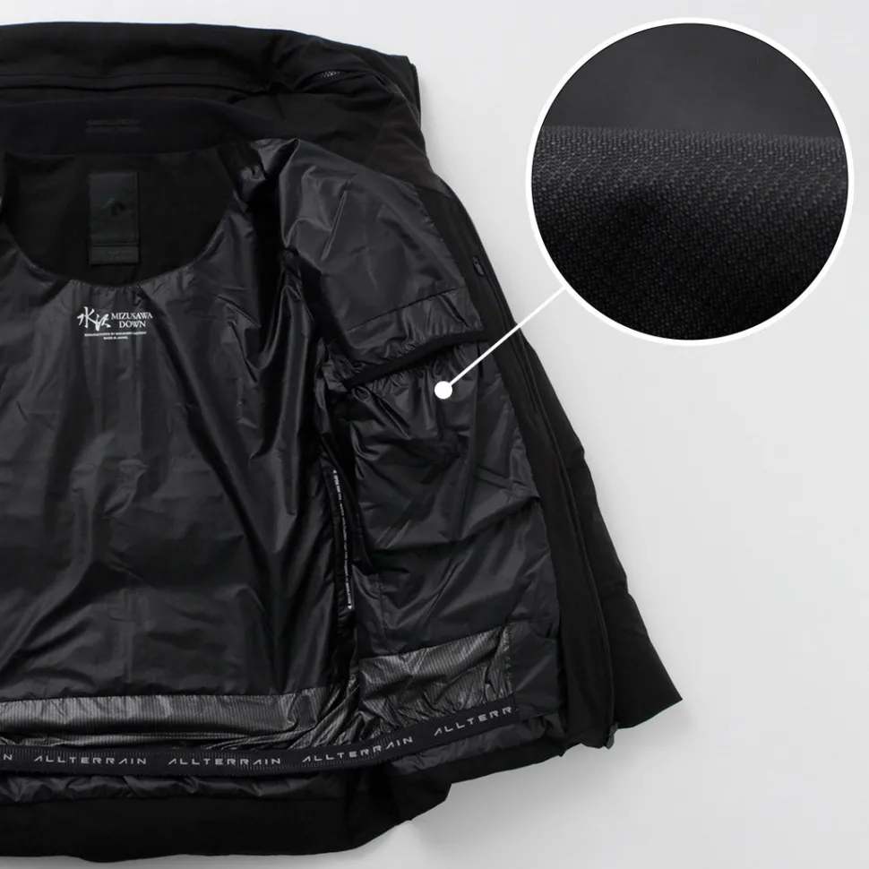 One of the weaknesses of down jackets has been the seams. In Mizusawa Down, the stitching is replaced with heat-bonded non-quilted processing, eliminating the need for stitches on the outer fabric. Areas where seams are necessary, like the sleeves, are treated with seam tape to prevent water intrusion, greatly improving waterproofing.