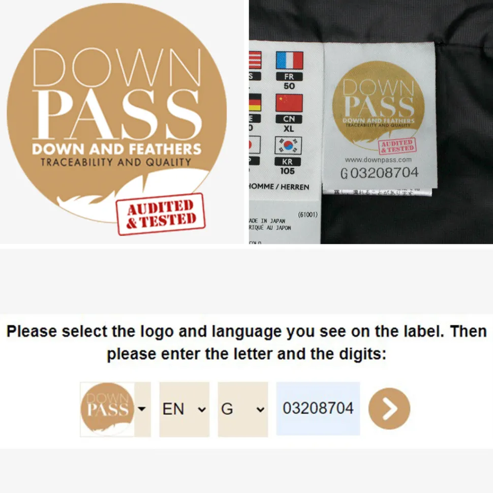 The jacket uses traceable, ethically sourced 750 fill power French white duck down, certified by “DOWNPASS.” This certification guarantees the down is ethically harvested with respect for animal welfare and meets high-quality standards.