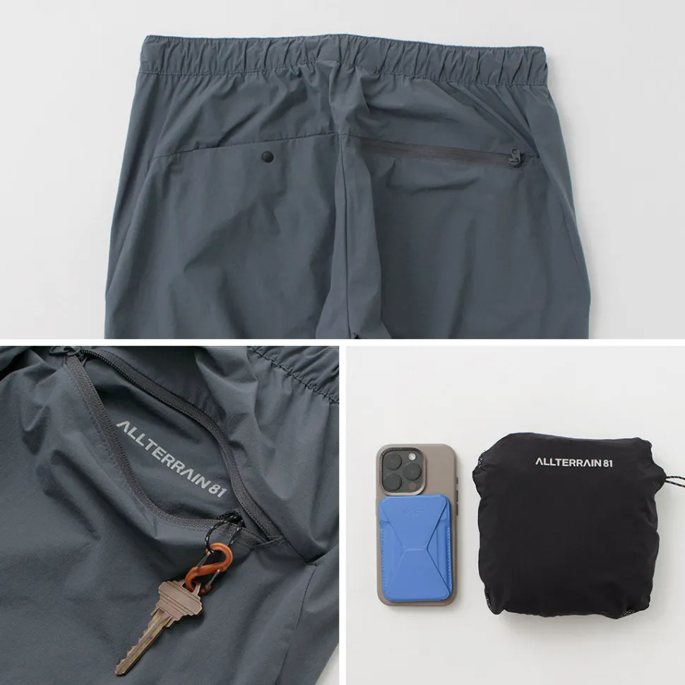 DESCENTEALLTERRAIN81 introduces pocketable pants made of lightweight stretch nylon. These easy-to-use pants combine stretchability to support a variety of movements with a water-repellent function that can repel a little rain.