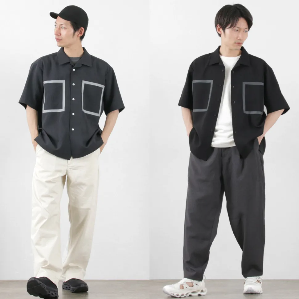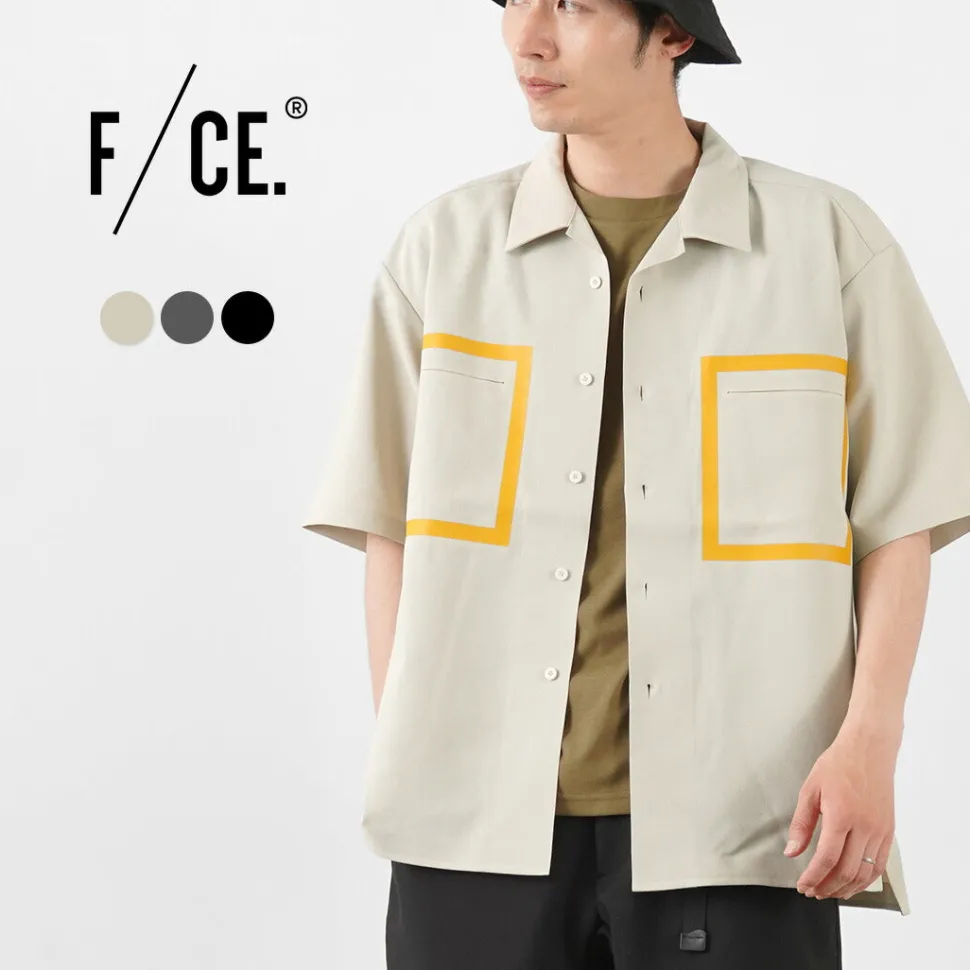 F/CE introduces an open collar shirt with a tropical wool look and front design.