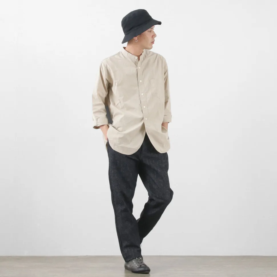 Hemp yarn is cast into the weft to create a light and cool herringbone fabric that is comfortable to wear. It has a classical fluffiness and a rough texture. The combination of cotton and hemp gives the fabric a crisp feel against the skin, making it comfortable to wear even during the sweaty season.