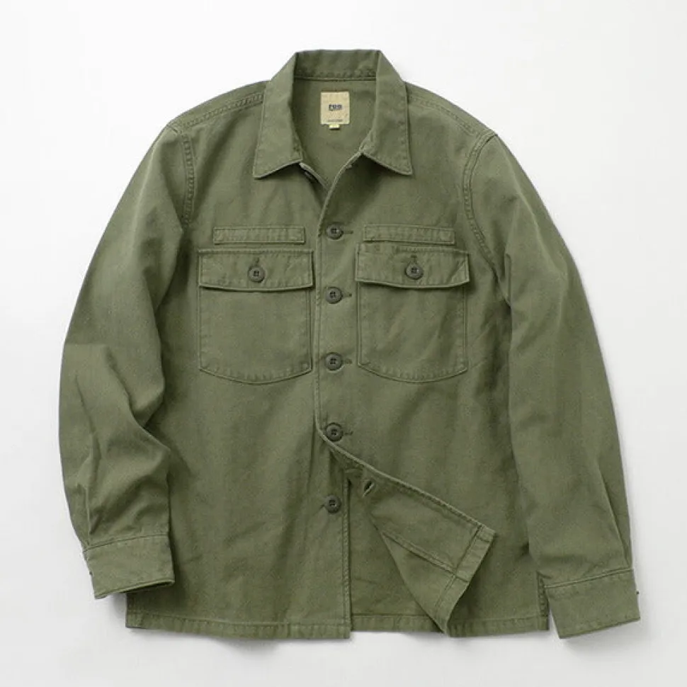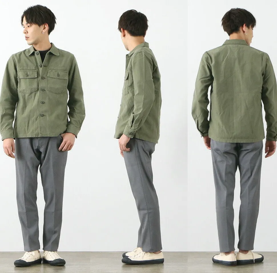 This jacket draws inspiration from the fatigue jackets worn by the US military during the Vietnam War. It exudes a plain yet sophisticated aura. Despite its simple design, it excels in strength and functionality. Simply wearing it adds a distinctive presence.