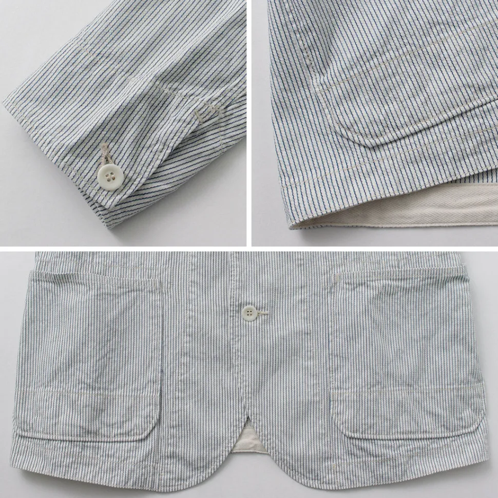 The brand’s well-known engineer’s jacket is now available in a cool and refreshing corded lane stripe. The fabric has an uneven texture and a good feel on the skin, providing a comfortable fit from the chilly season to early summer.