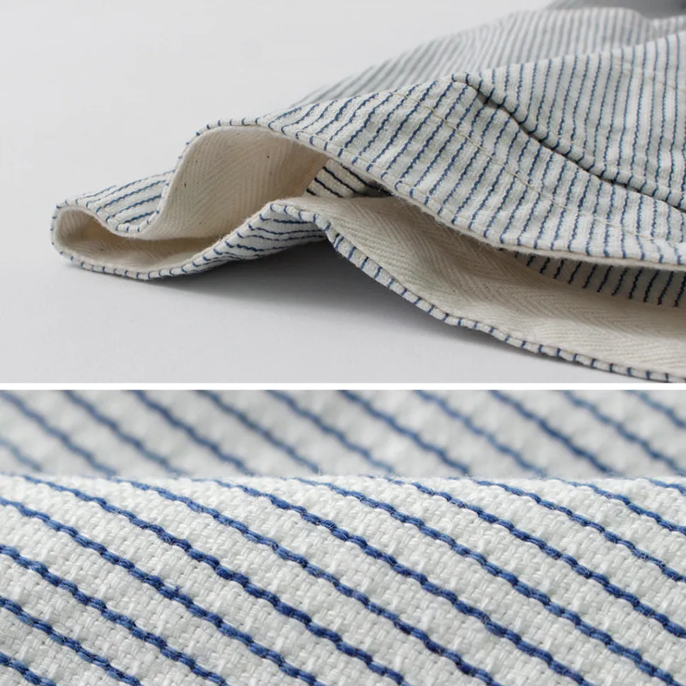 The fabric is made from an original cotton 100% code lane fabric created by the brand. The blue stripes on a white base create a refreshing impression with a three-dimensional woven texture.