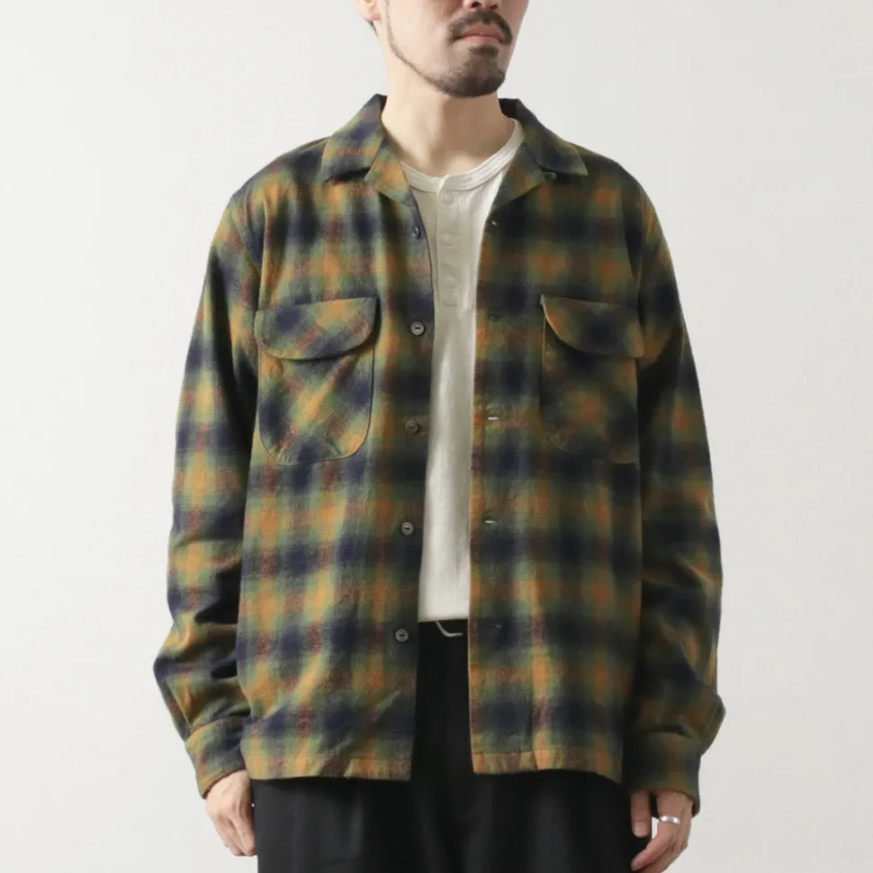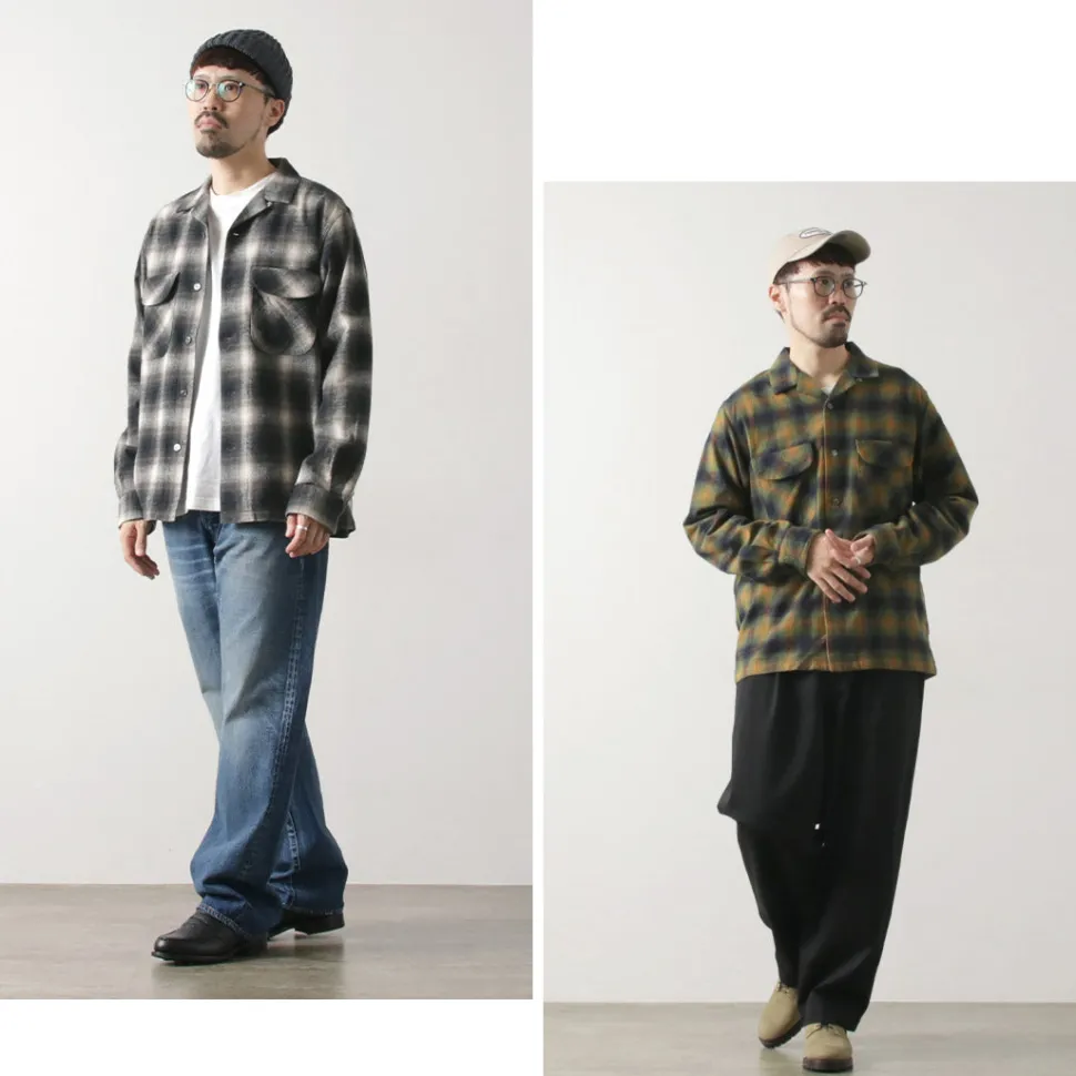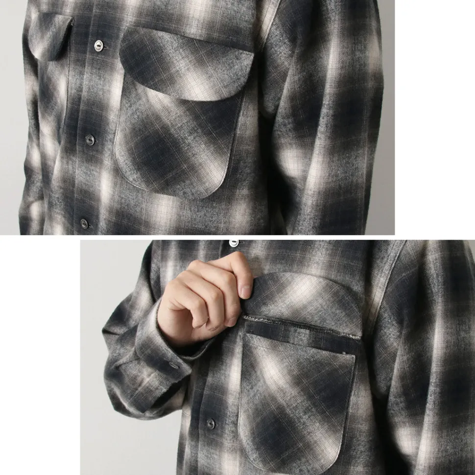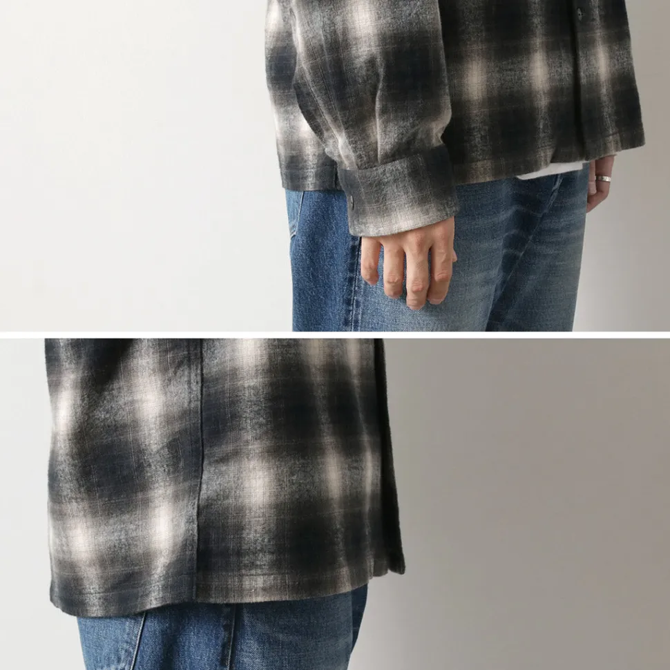 This item features a retro and warm ombre check check using a stiff and thick flannel fabric with a brushed texture. It is a piece that adds an accent to your fall/winter coordination as a woven jacket in the chilly season or as an inner layer in the winter season.