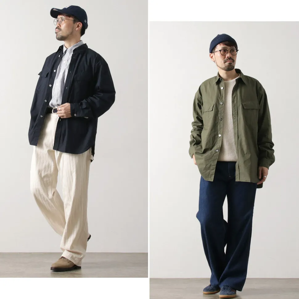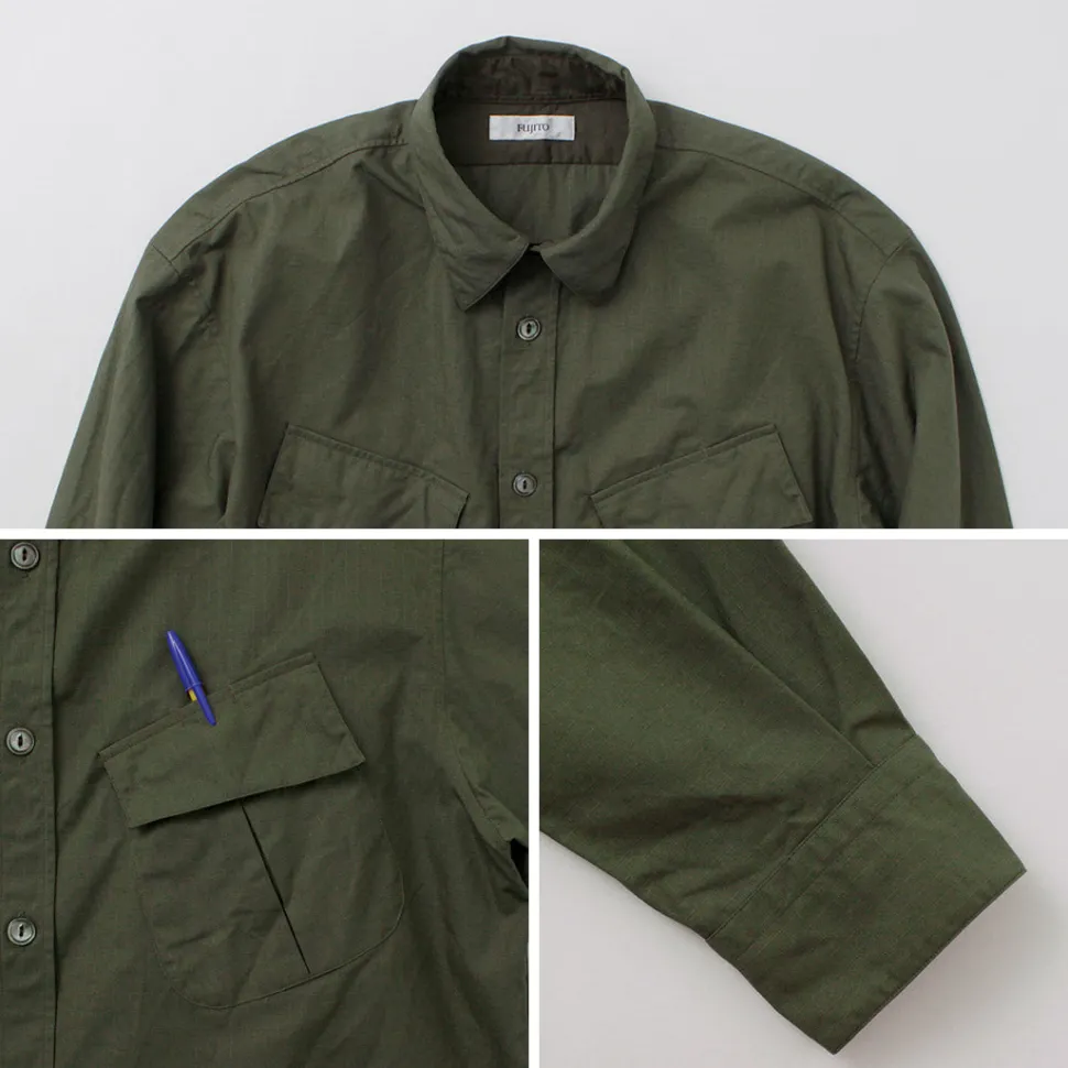 FUJITO introduces a relaxed fatigues shirt made of ripstop fabric with excellent durability.
