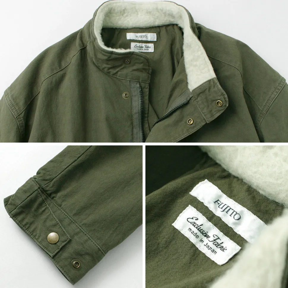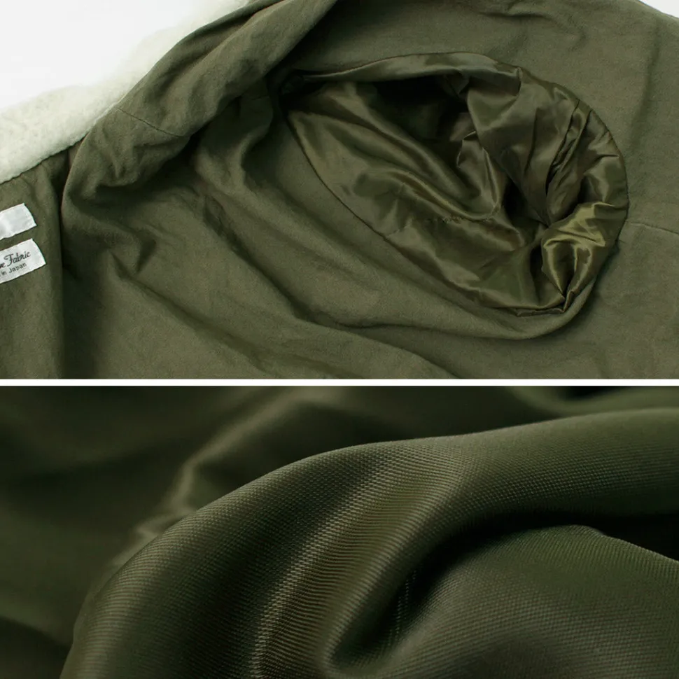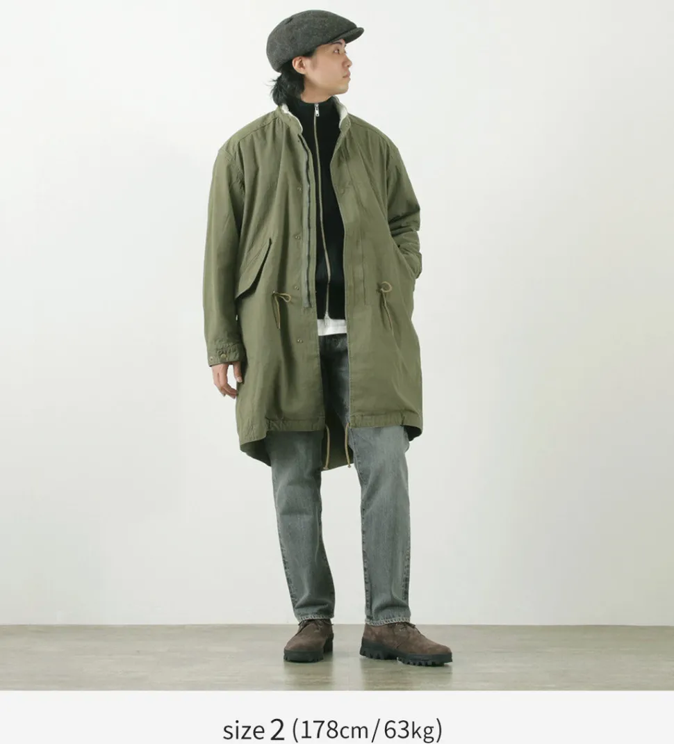 While following the design of the original mods coat, tailored details such as the back lining, sleeve lining, and inside pockets have been incorporated, giving a sense of careful FUJITO-like finishing.