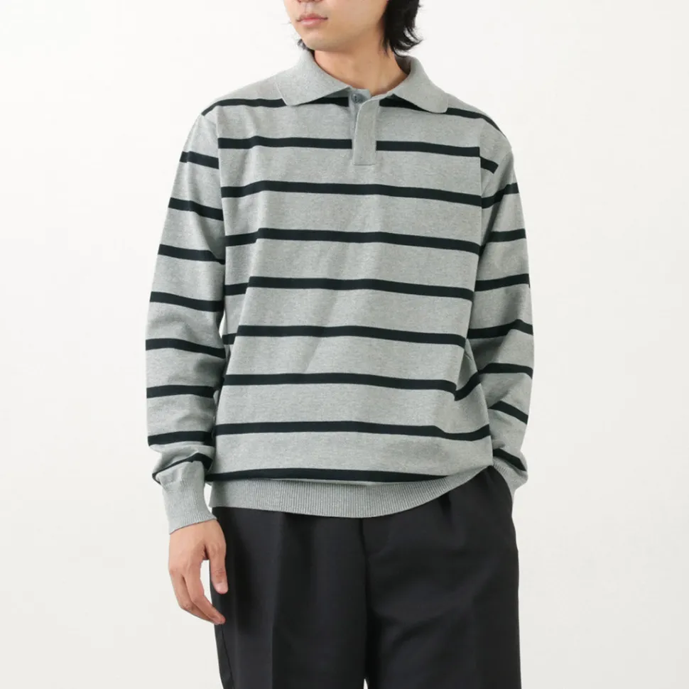 FUJITO introduces a lager shirt with an eye-catching thick stripe pattern. This is a piece with FUJITO’s unique specifications, a knit sweater made from a lager shirt like the one worn by the famous painter David Hockney. Enjoy this item with an outstanding sense of presence, which can be used as an inner layer as well as a single piece.