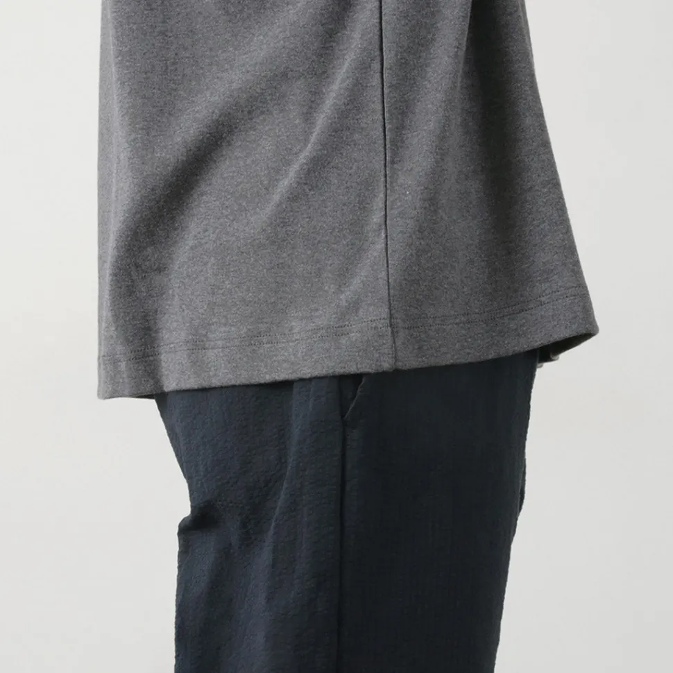 Unlike the ribbed finish on , it features a simple double-needle finish, creating a relaxed silhouette. It’s also easy to use as an inner layer.