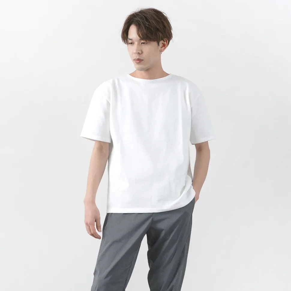 The boat neck, typical of French cut-and-sew shirts, has been taken over and made into a short-sleeved version that can be easily picked up even in the hot and humid season.