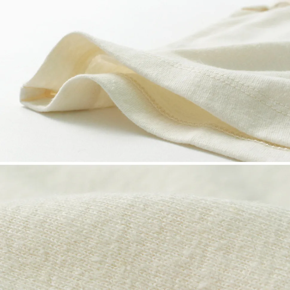 The hemp and cotton fabric has excellent moisture absorption and quick-drying properties, making it comfortable to wear even during the sweaty season. With a basic silhouette that is easy to use, this item can be worn alone or as an inner layer in a wide range of situations.
