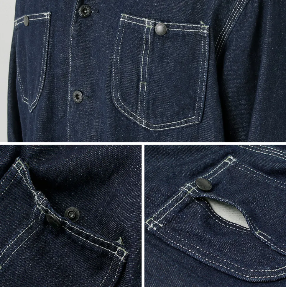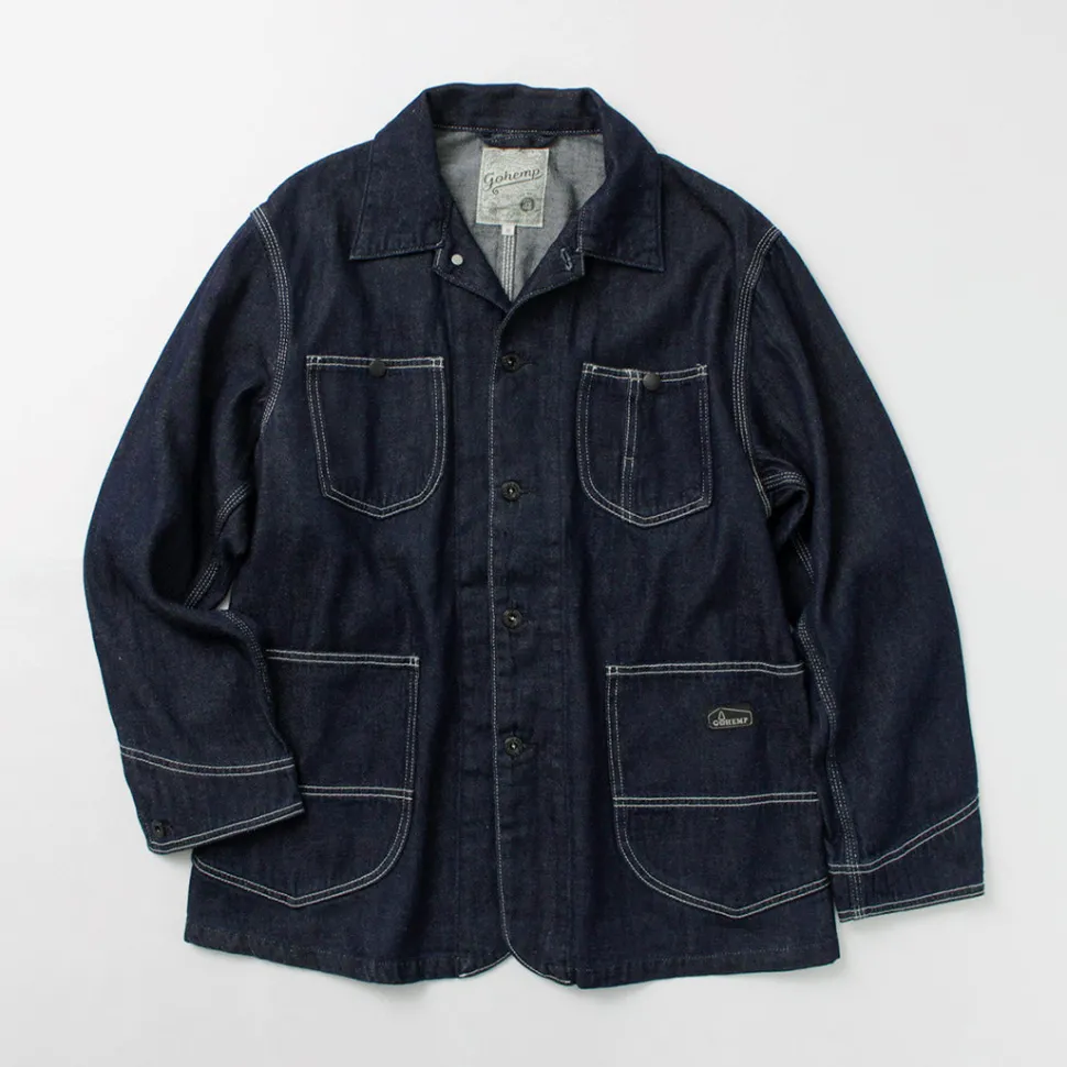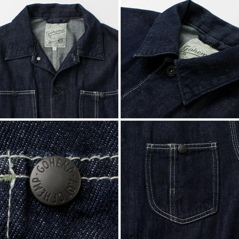 This coverall jacket is made of GOHEMP’s classic hemp cotton denim, and is finished with a trendy tailored pattern and a loose, roomy silhouette while maintaining the vintage details and traditional sewing that are GOHEMP’s strong points.