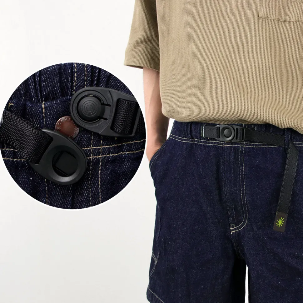 The waist is elastic with a one-touch detachable webbing belt. The gimmicky specification of the special fit-in type tickles men’s hearts.