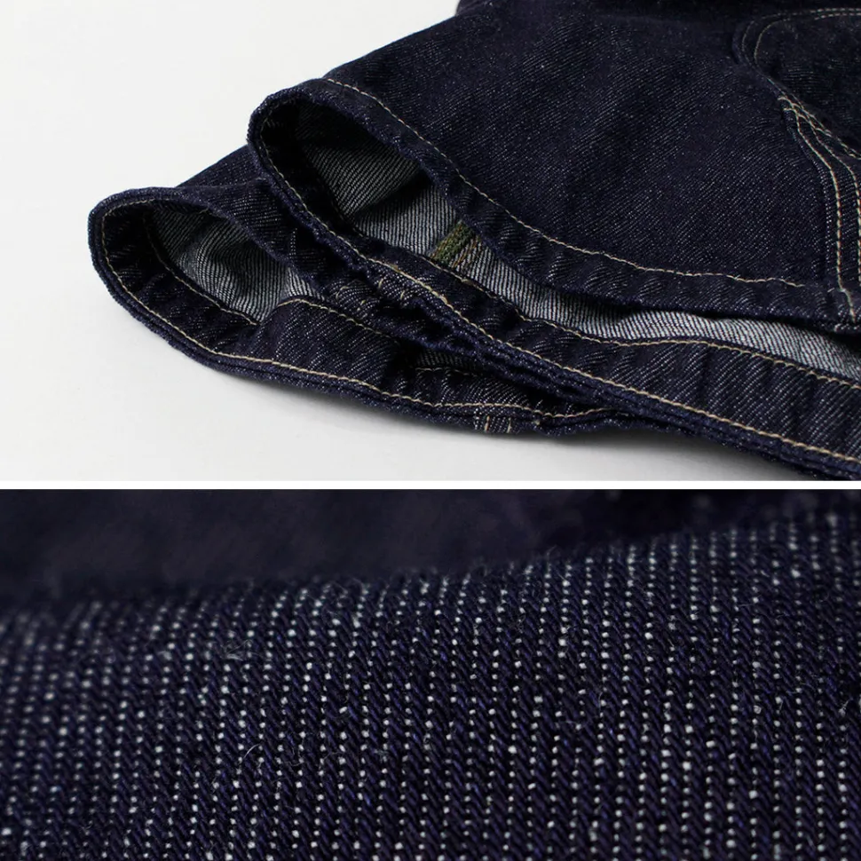 9oz denim blended with cotton and hemp, also known as a natural technical material. It features the gentle feel of hemp cotton on the skin and a slightly lighter fabric that is ideal for summer.