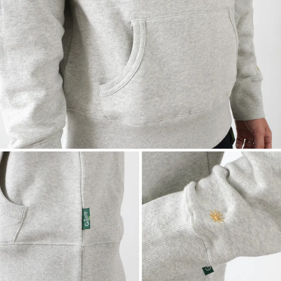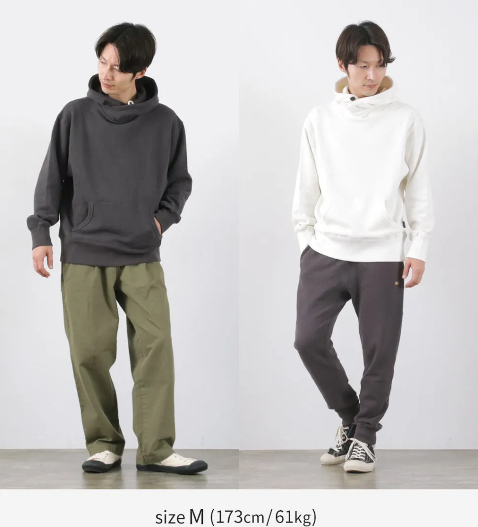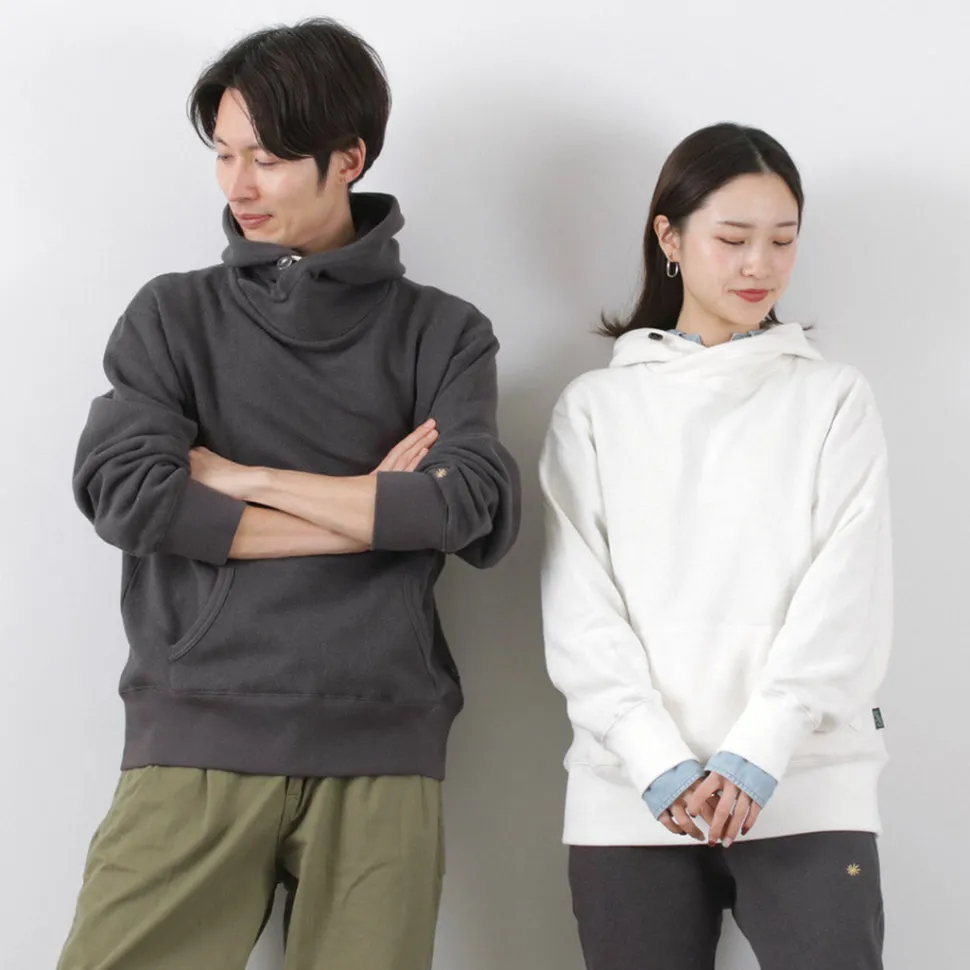 This hoodie features a hood that looks like a shawl wrapped around it. The buttons around the neck can be used to change the silhouette. The fabric is made of GOHEMP’s standard hemp and cotton. The fabric is soft yet sturdy and durable. The reverse side is brushed, so it is a piece that can be worn warmly and comfortably even in the middle of winter.