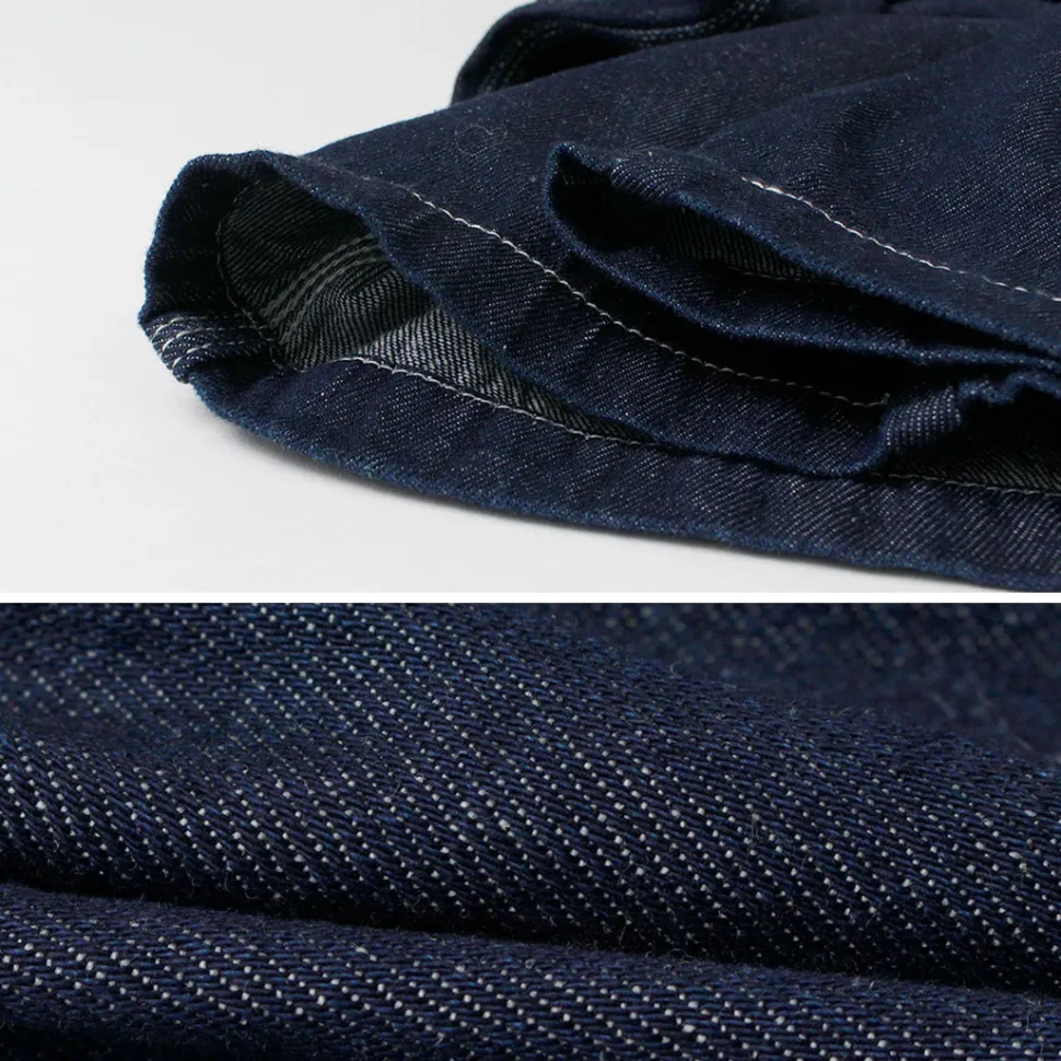 9 oz. one-wash denim made of original hemp cotton material. It features the gentle feel of hemp cotton on the skin and a slightly thin fabric.