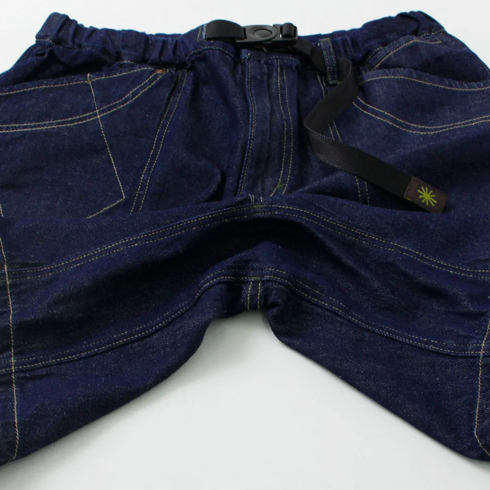 9oz denim blended with cotton and hemp, also known as a natural technical material. It features the gentle feel of hemp cotton on the skin and a slightly lighter fabric that is ideal for summer.