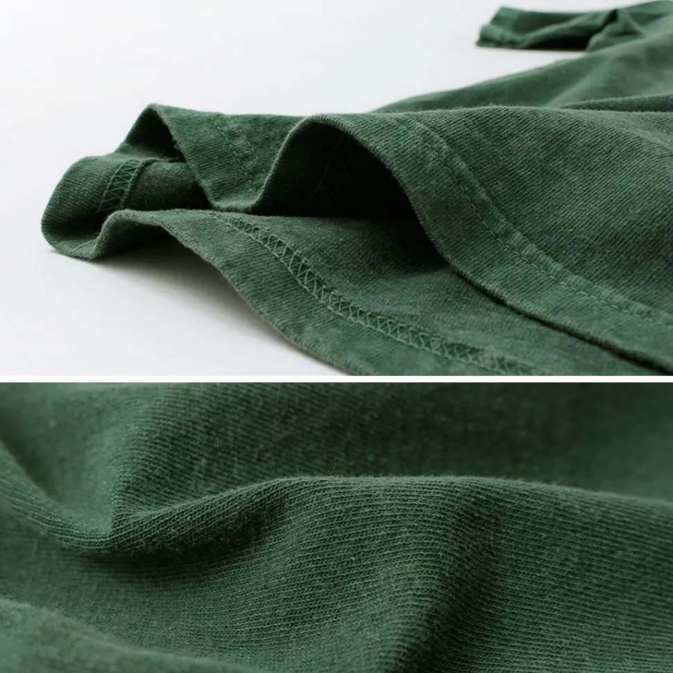 The pigment-dyed colour, in which the shades of colour stand out in the unevenness of the fabric and sewing points, has a uniquely attractive and tasteful look. Each time the garment is washed, the colour gradually fades from the surface and the texture is further enhanced, giving the garment a vintage look.