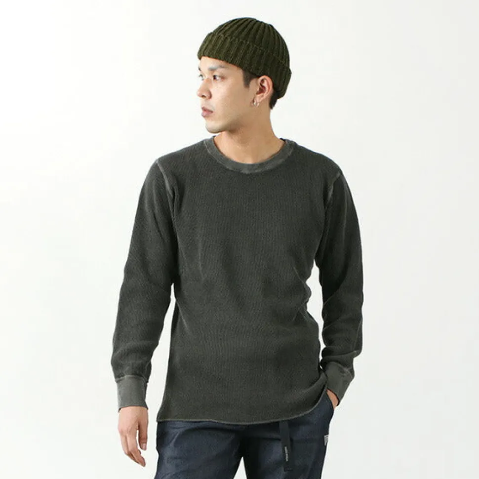 Fabric is tailored from 100% cotton. The thermal fabric is made from durable and comfortable USA cotton, knitted into a waffle shape with moderate elasticity, stretchiness, and warmth by excellent Japanese craftsmen’s techniques. The four-needle flat seamer gives it a gentle and comfortable feel against the skin.