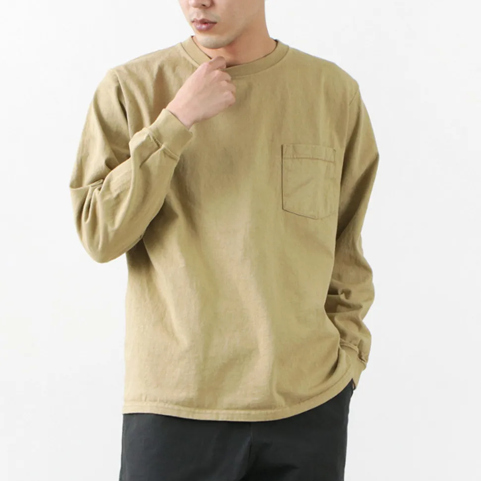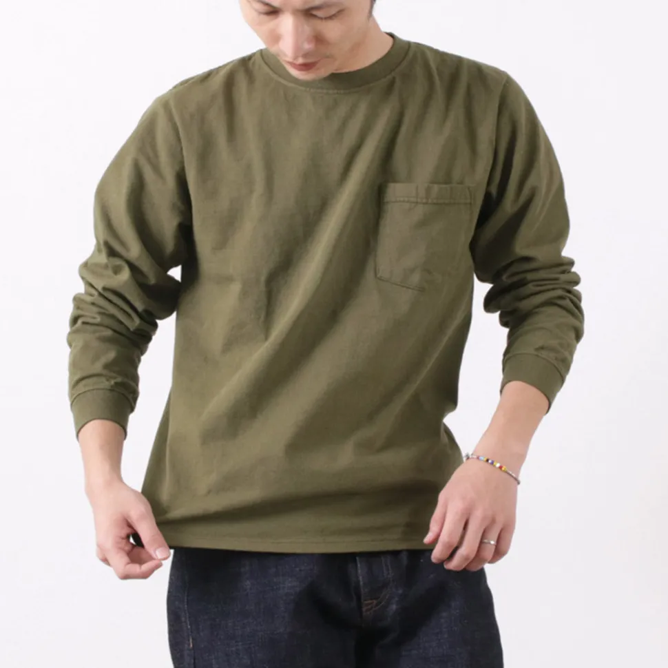 GOODWEAR, a brand established in 1983, continues to stick to made-in-U.S.A. in both materials and manufacturing methods. This long sleeve pocket T-shirt made of 7.2oz heavyweight cotton is a staple and synonymous with the brand.