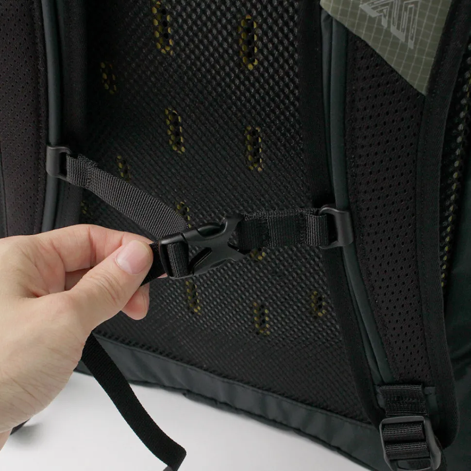 Using the adjustable sternum strap increases stability, reduces shoulder slippage, and minimizes load sway.