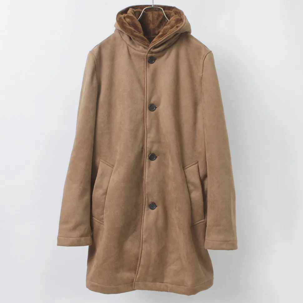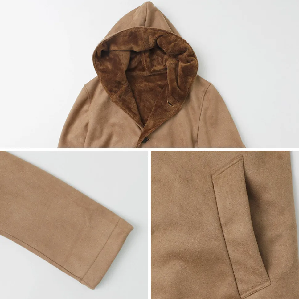 A clean silhouette with an above-the-knee length and knit mouton material that is characterized by its superb texture.