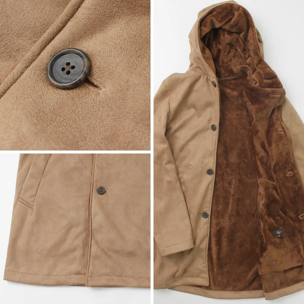 The outer material is a fine suede-like texture, and the lining is a shaggy raised fabric with a long pile.
