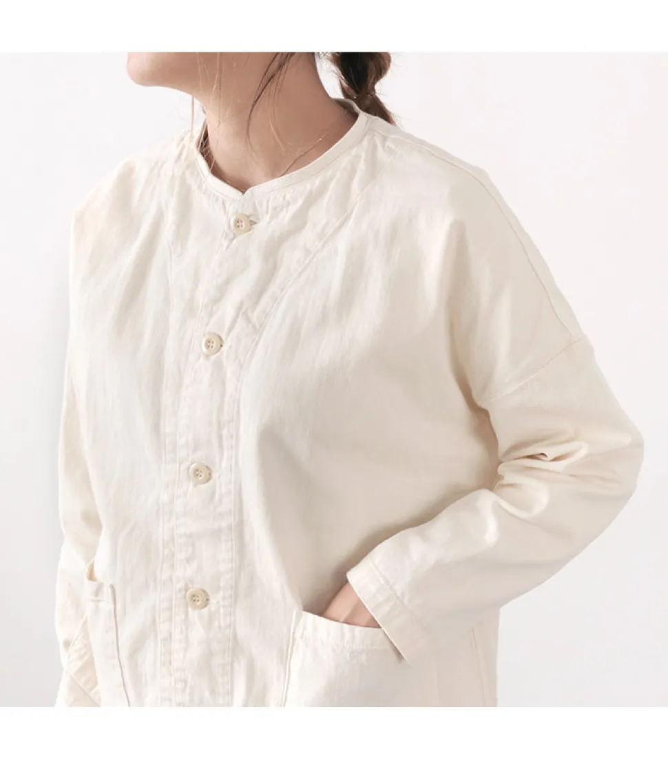 The unlined one-piece tailoring is light and easy to throw on and off, making it useful for indoor wear or as a light outerwear for the changing seasons. Precious details