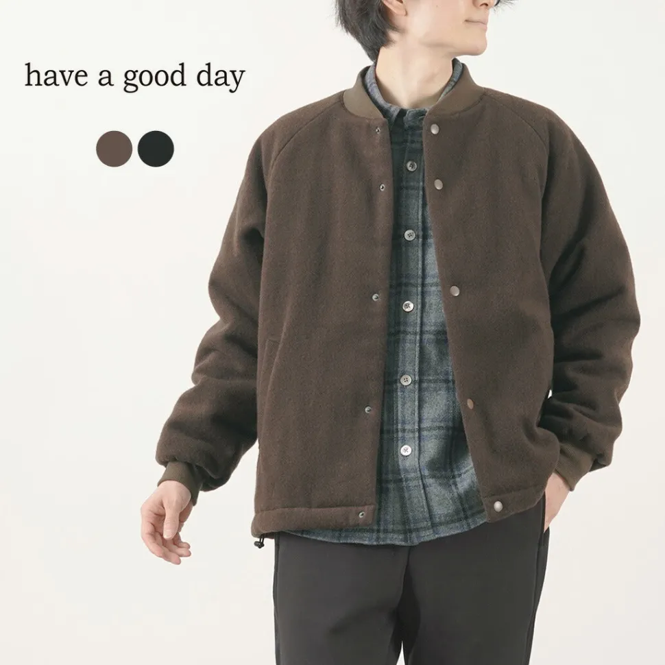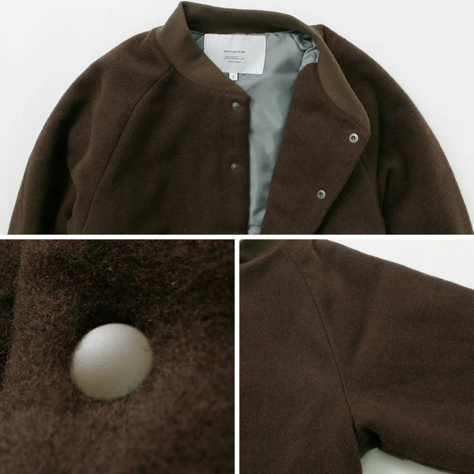 HAVE A GOOD DAY introduces an elegant yet casual rib collar jacket. The fabric is a richly textured wool blend that is much lighter and softer than it looks. The moderate texture of wool and the warmth that envelops you make this item comfortable and easy to wear.